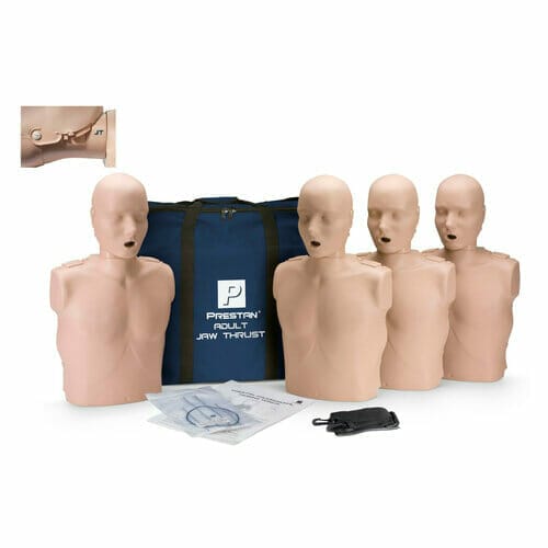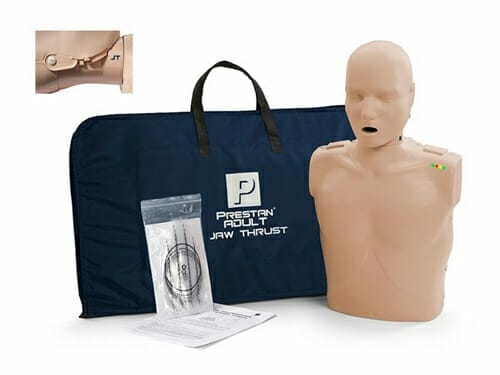 Jaw-thrust manikin head enhances the CPR learning experience and teaches students how to open the airway to perform CPR on a victim with a suspected spinal injury.