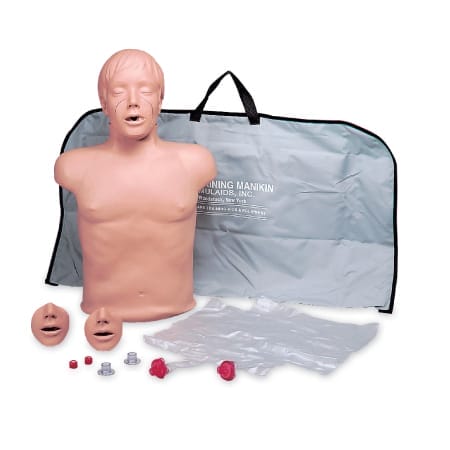 These economical CPR manikins are constructed of soft, realistic vinyl plastic over polyurethane foam. Features include: long torso for realistic abdominal thrusts, realistic head tilt and chin lift for opening airway, and anatomical landmarks including sternum and rib cage plus substernal notch. Airway can be easily manipulated to simulate airway obstruction or choking situations.